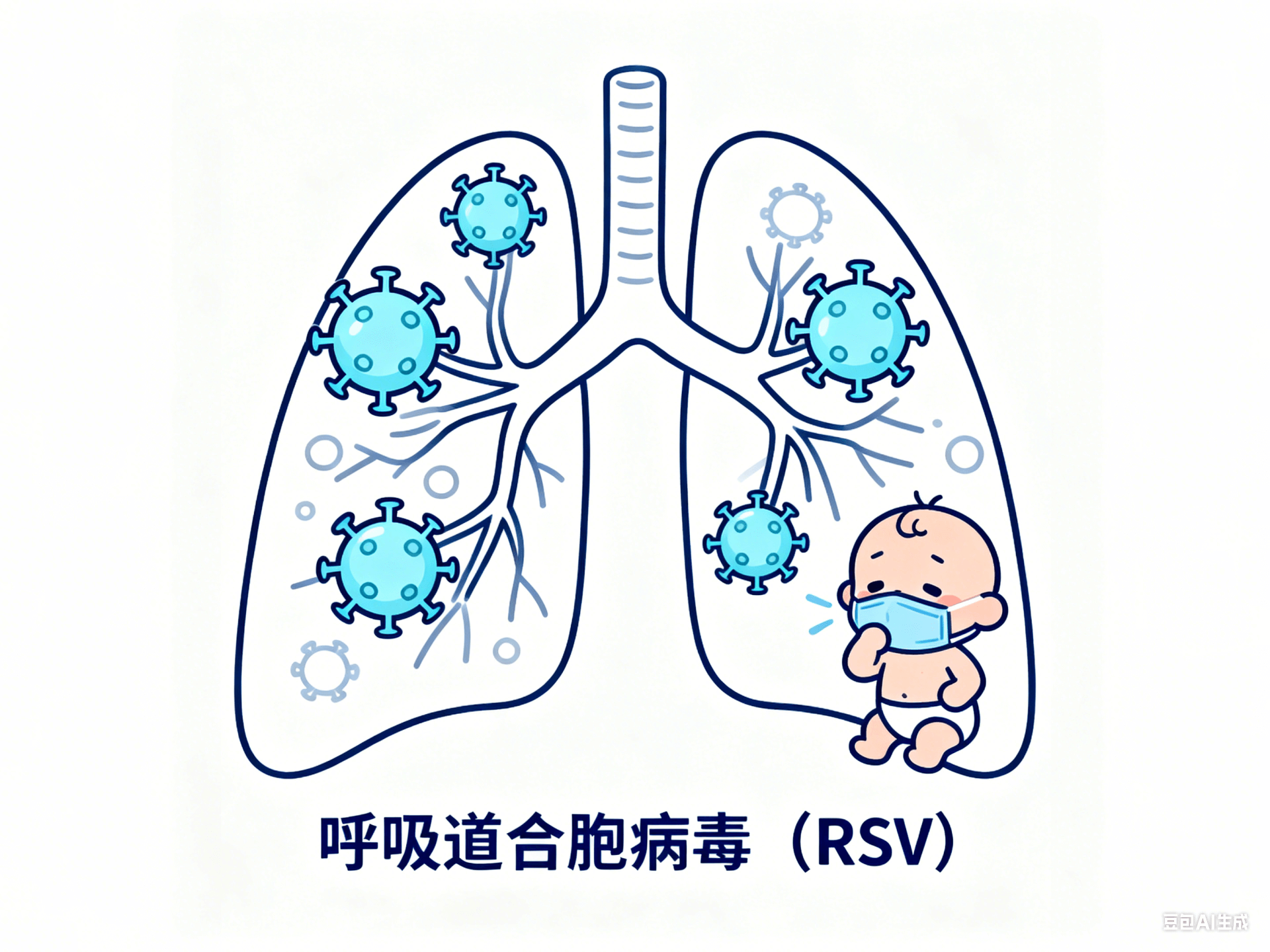 呼吸道合胞病毒(RSV)是一种常见的RNA病毒,属于副黏病毒科,是引起婴幼儿急性下呼吸道感染(如毛细支气管炎、肺炎)的首要病原体。它并非新病毒,而是长期存在于人群中,几乎所有儿童在2岁前都曾感染过(但可能无症状或症状轻微),且感染后不会产生终身免疫,可能反复感染。