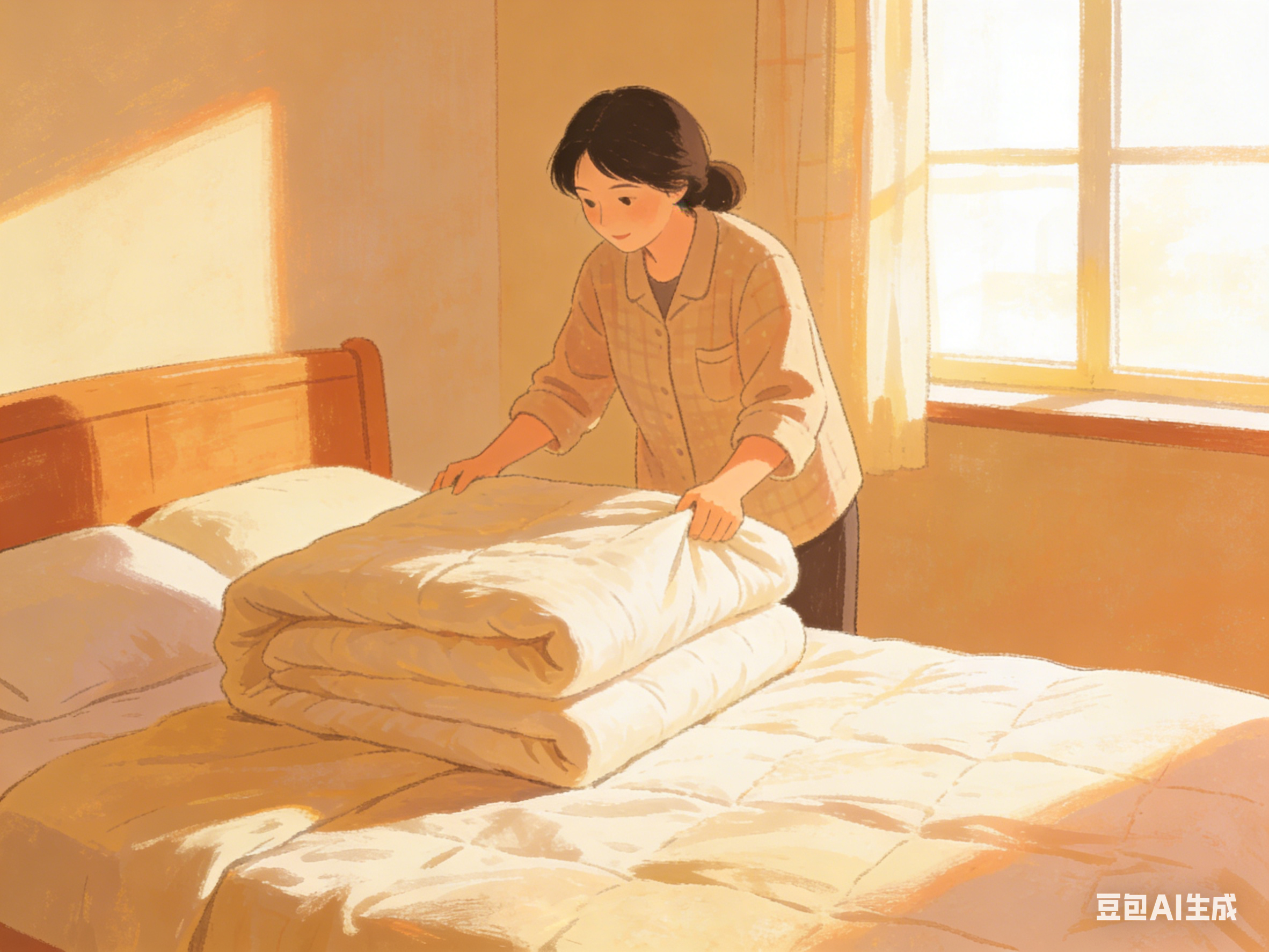 科学建议:起床后,将被子翻面,平铺或反面朝外晾一会儿,并打开窗户通风。让被褥内的湿气充分散发、温度下降后,再叠起来或铺平。