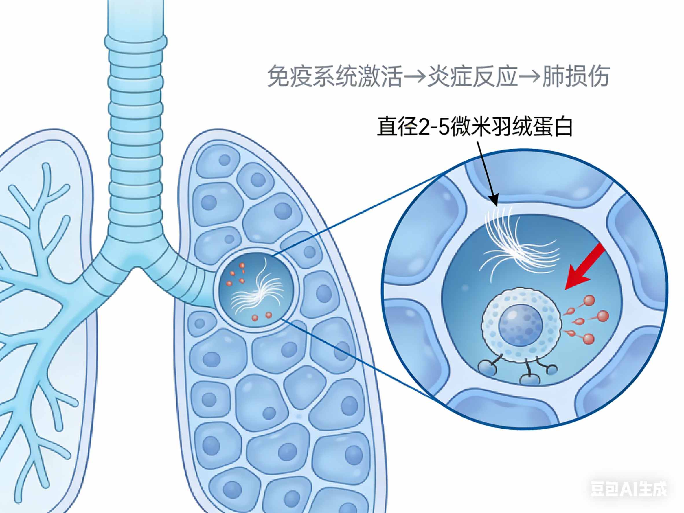 “羽绒肺”是什么?微小羽绒蛋白如何攻击肺部?