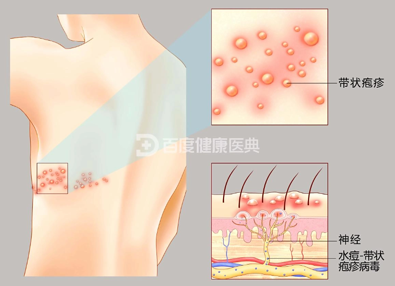 病毒的传播路径决定了它的典型表现——“沿着神经分布,呈带状排列”。