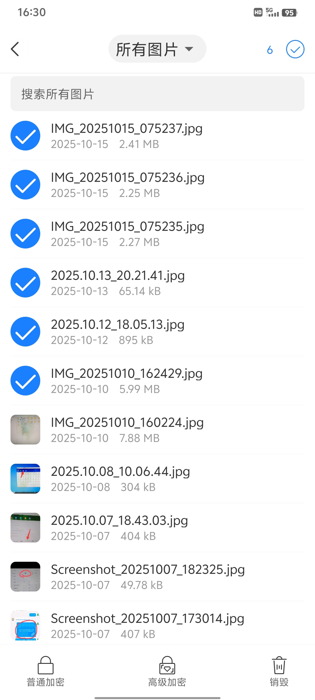 勾选需要加密的照片(支持单张或多张批量选择);点击“普通加密”