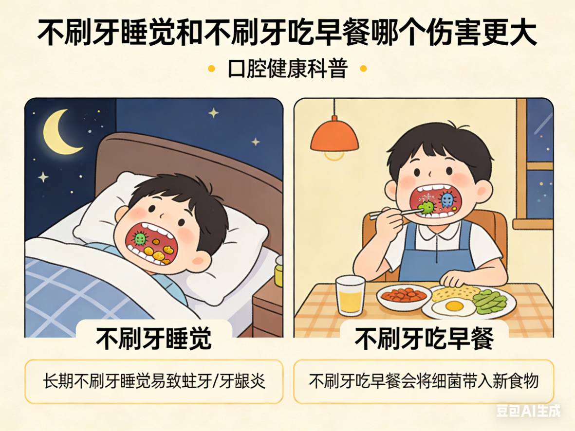 结论是:不刷牙睡觉的危害,远远大于不刷牙吃早餐。